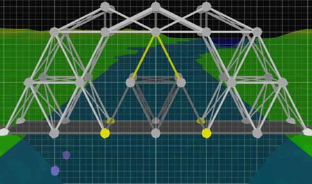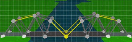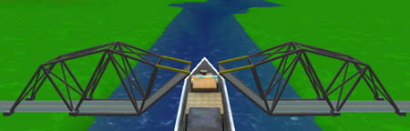 Voyons ce que vous arrivez à faire et venez partager vos idées avec les autres! Pour résoudre les niveaux les plus complexes nécessitant des ponts mobiles, vous aurez à faire des expériences pour trouver vos propres techniques de construction.Le point important est (évidemment) que lorsque le pont s'ouvre, les deux parties soient assez solides pour se tenir debout toutes seules. Si vous avez encore besoin d'inspiration, allez voir La section de construction des ponts et le Forum chez BridgeBuilder-Game.com - il y a des fils de discussion intéressants à propos des ponts mobiles! Un problème classique: Les ponts qui ne se ferment plus après que le bateau soit passé Il peut parfois arriver que votre pont semble se refermer correctement, mais que vous n'entendiez pas le bruit de fermeture et que la phase suivante de simulation ne démarre pas, et il ne vous est alors pas possible de finir ce niveau. Ceci se produit d'habitude si votre pont n'est pas assez rigide (ce qui arrive souvent quand on emploie des cables), donc une fois ouvert, les côtés ne correspondent plus exactement à nouveau. pour éviter ceci, vous devez faire que votre pont soit plus solide - essayez d'ajouter plus de poutres aux points importants, essayez d'utiliser de l'acier à la place du fer, ne retirez pas les entretoises, évitez les formes rectangulaires au profit des triangles. Retour à la page principale | ||||