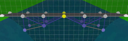Home > Bridge Construction Set > French Manual > Drawbridges Comment construire des ponts mobiles Pour créer un pont mobile à bascule simple (comme dans les niveaux Medium 3, Medium 6, Complex 1, Complex 7), commencez par construire votre pont comme d'habitude et construisez des supports indépendants sur chaque rive (au lieu de faire une arche), et laissez les deux pièces médianes du tablier non soutenues, comme ceci: